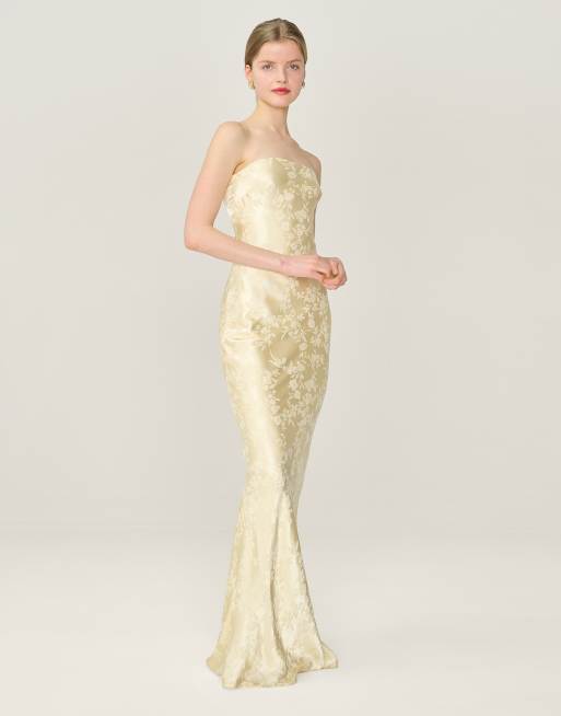 Omnes Dresses amdra strapless floral maxi dress in butter yellow in yellow