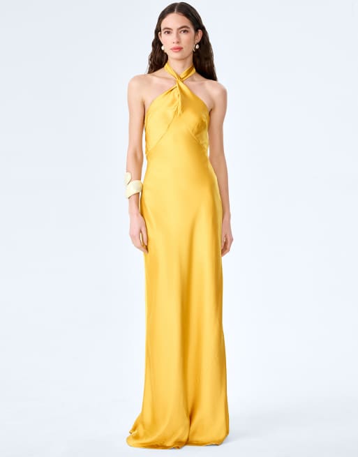 Omnes Dresses arles halterneck satin maxi dress in yellow in yellow