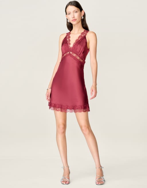 Omnes Dresses darlia mini dress with lace detail in red velvet