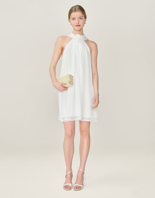 Omnes Dresses demi chiffon mini dress with rosette detail in ivory in white