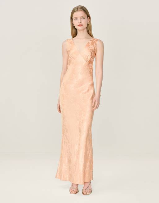 Omnes Dresses iris floral jacquard midi slip dress in peach in orange