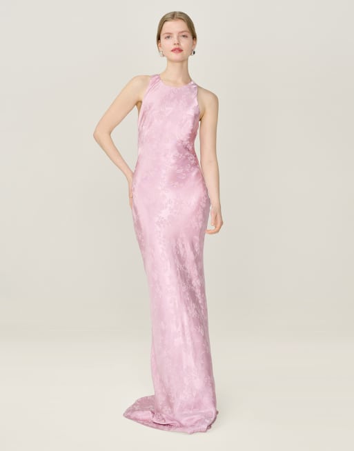 Omnes Dresses jai floral maxi dress with cross back in dusty pink in pink