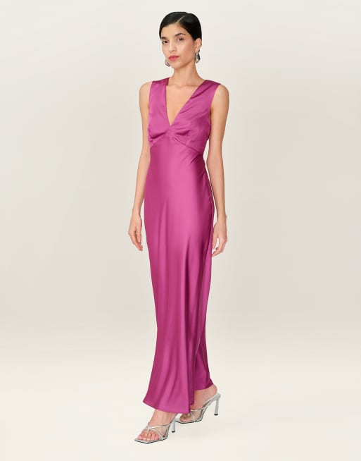 Omnes Dresses nova satin midi dress with open back in magenta in magenta