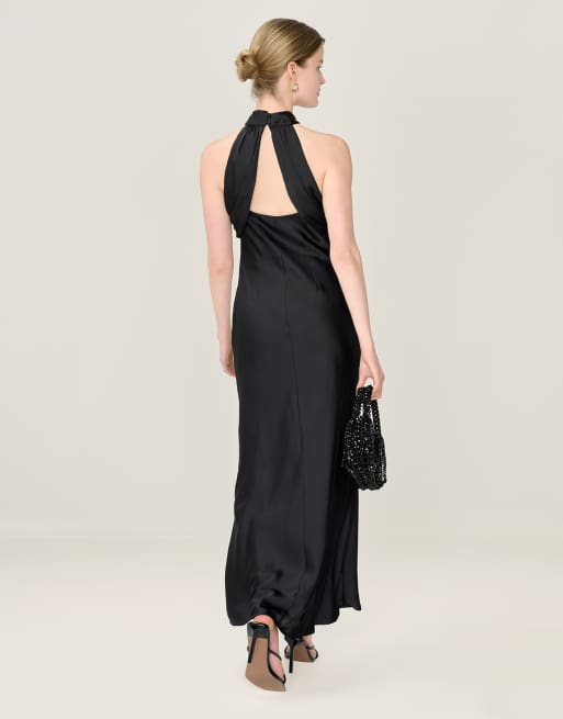 Omnes Dresses seychelles halter neck satin midi dress in black in black