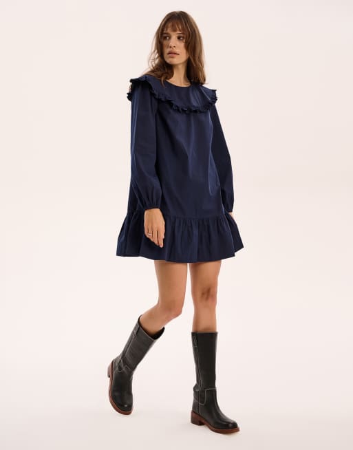 OMNES Emili Frill Mini Dress in navy