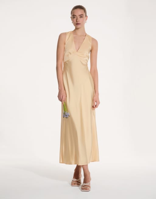 OMNES Nova Satin Bridesmaid Dress in yellow