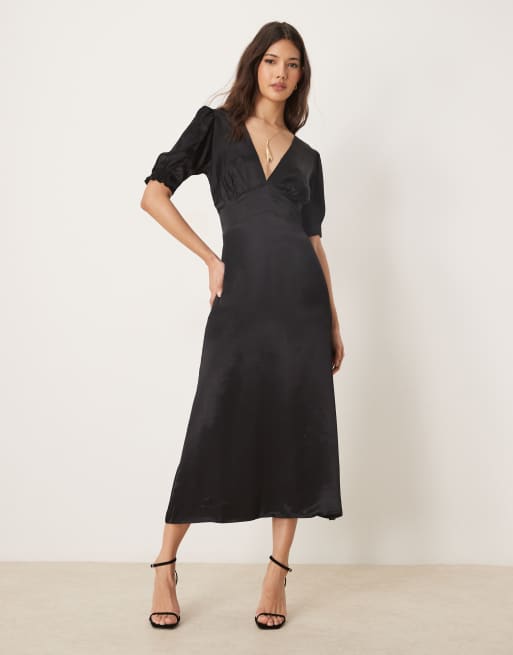 OMNES Odette Satin Midi Dress in black