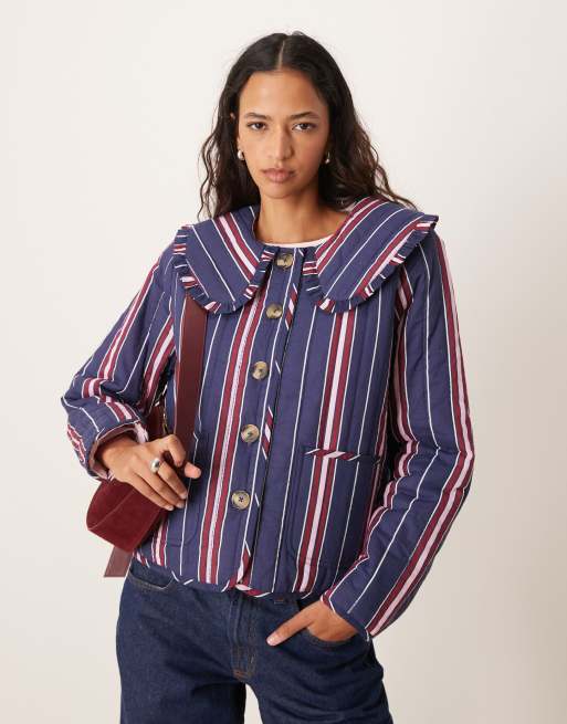 OMNES Peggy Quilted Jacket in Navy Stripe