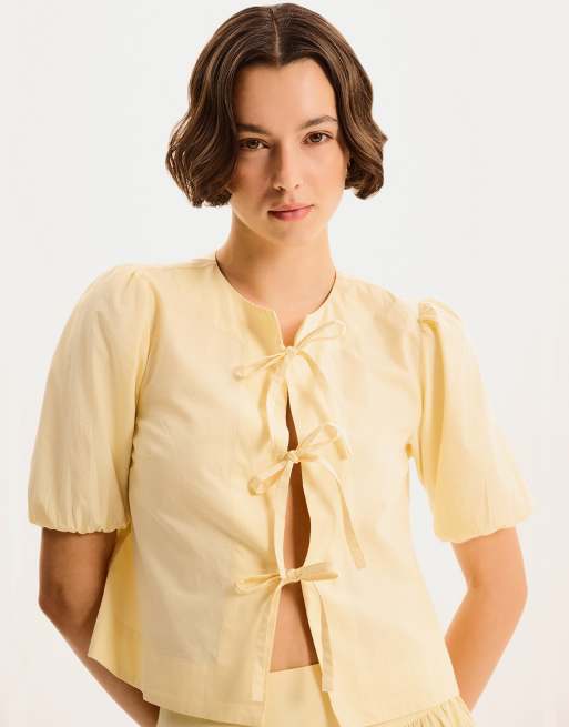 Omnes Shirt pollo cotton tie blouse in yellow in yellow