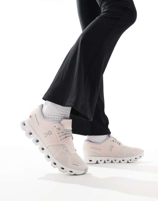 ON Cloud 5 all day trainers in pink and white