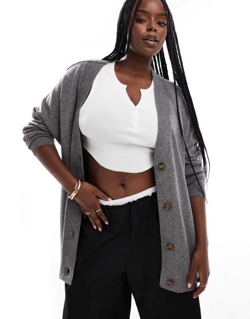 ONLY Curve longline cardigan in grey melange