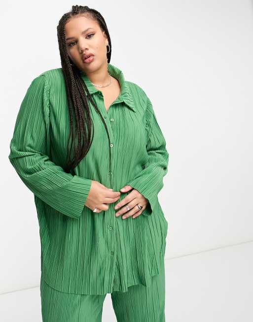 Only Curve plisse shirt co-ord in green
