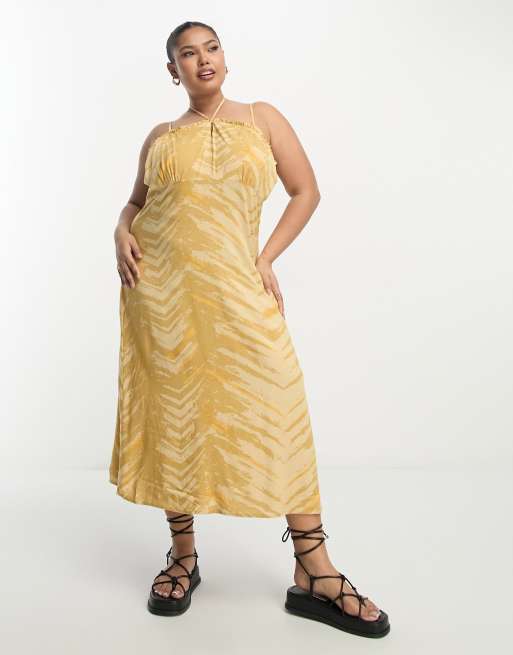 Only curve printed strappy midi dress in mustard