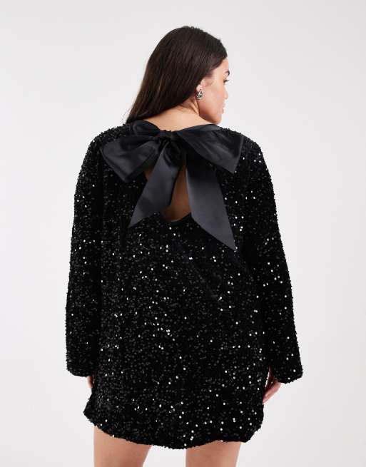 ONLY Curve sequin back detail bow mini dress in black