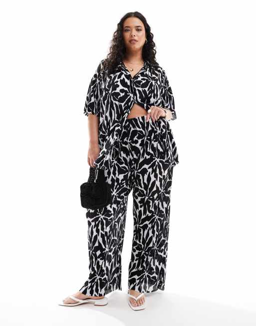 ONLY Curve wide leg trouser co-ord in abstract flower print