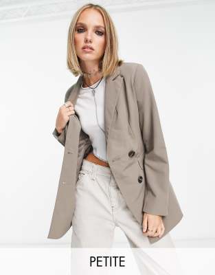 ONLY Petite double breasted blazer in mushroom
