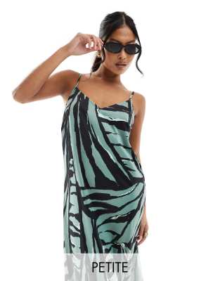 ONLY Petite v neck satin maxi dress in multi abstract print