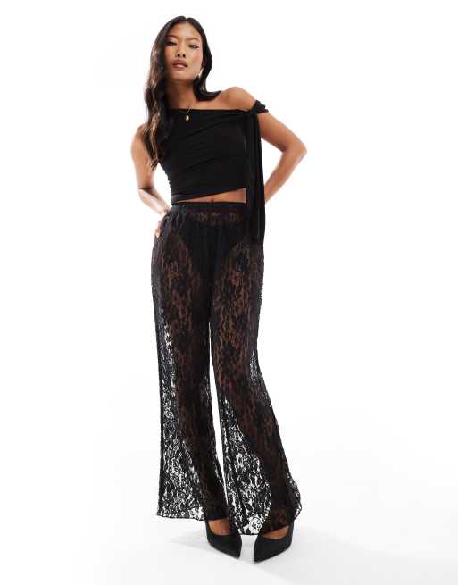 ONLY Petite wide leg lace trousers in black