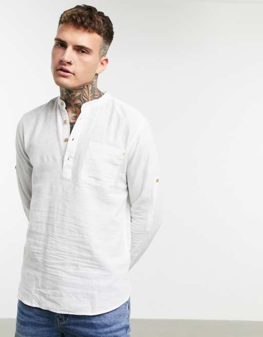 Only & Sons grandad collar linen mix shirt in white