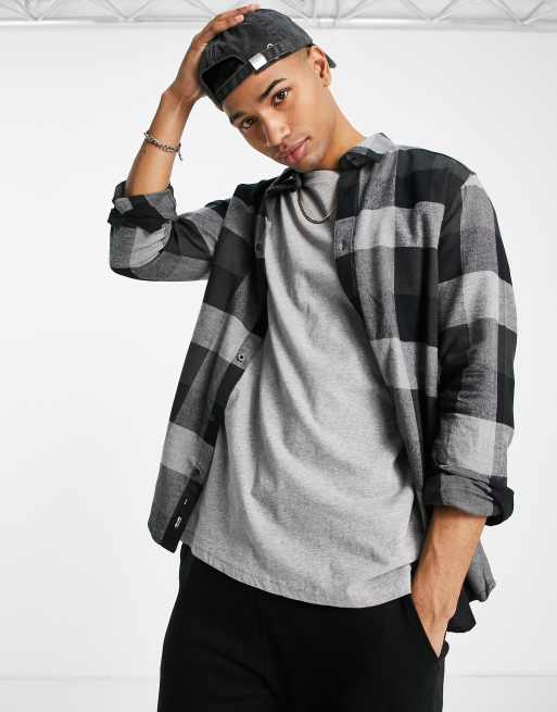 Only & Sons long sleeve check shirt in dark green