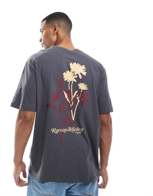 ONLY & SONS oversize t-shirt with floral back print in washed black