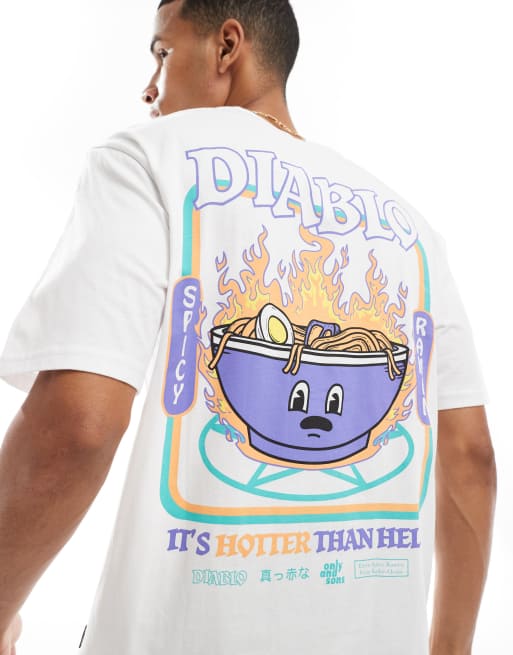 ONLY & SONS relaxed fit t-shirt with diablo back print in white