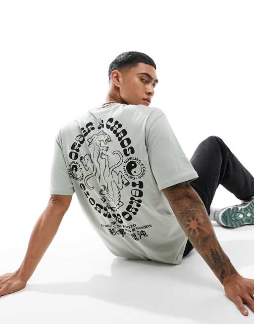 ONLY & SONS relaxed tiger t-shirt in sage green