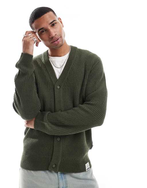 ONLY & SONS ribbed knit cardigan in green