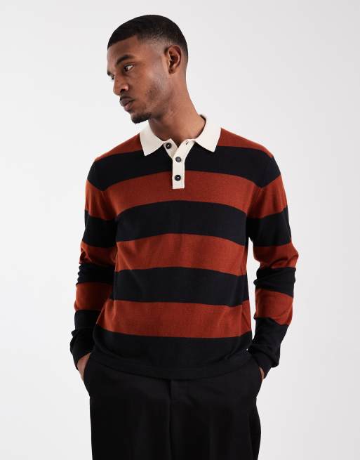 ONLY & SONS rugby knit jumper in black & red stripe