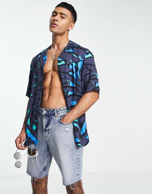 Only & Sons short sleeve shirt in enlarge palm print in blue co-ord