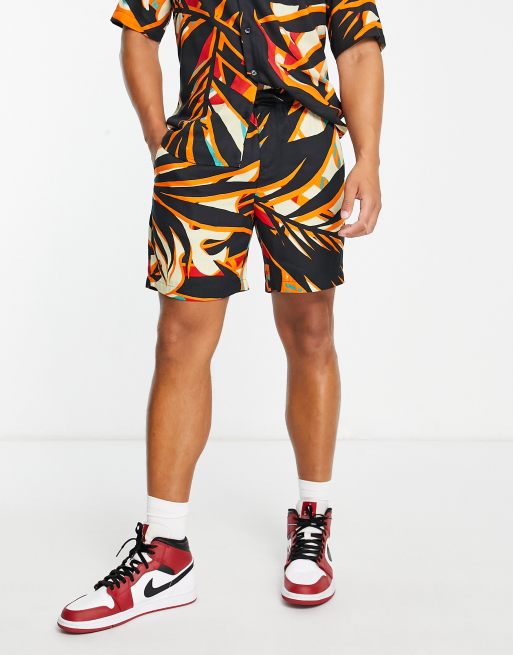Only & Sons shorts in enlarge palm print in orange co-ord