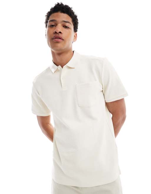 ONLY & SONS textured short sleeve polo in cream
