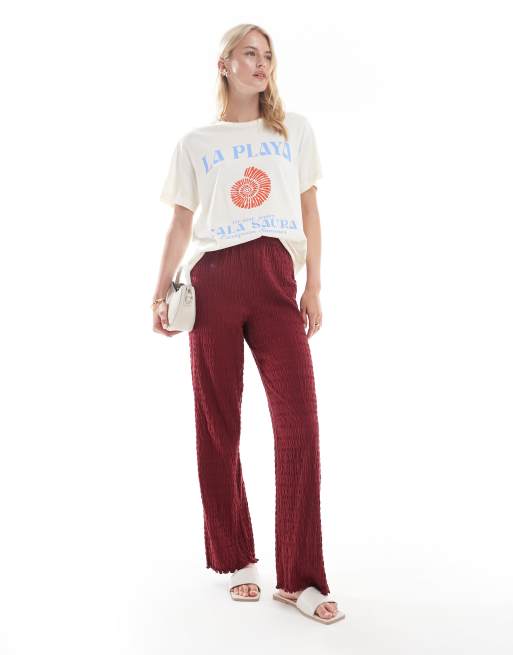 ONLY Tall relaxed fit shirred trousers in burgundy