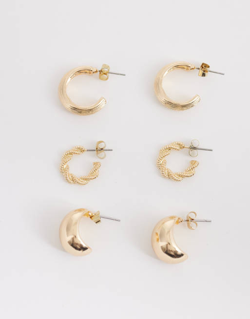 ONLY 3-pack mini hoop earrings in gold