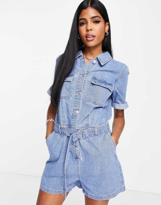 Only Ally blue denim short sleeve playsuit