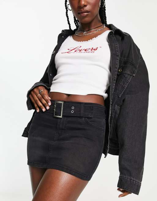Only belted denim mini skirt in washed black