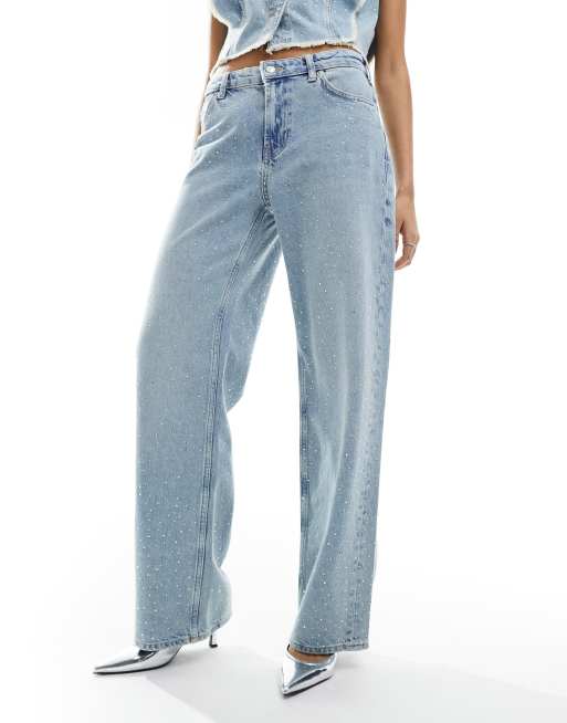 ONLY Cobain wide leg rhinestone detail jeans co-ord in light blue