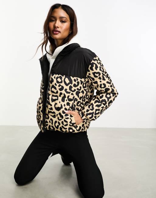 ONLY colour block padded jacket in leopard & black