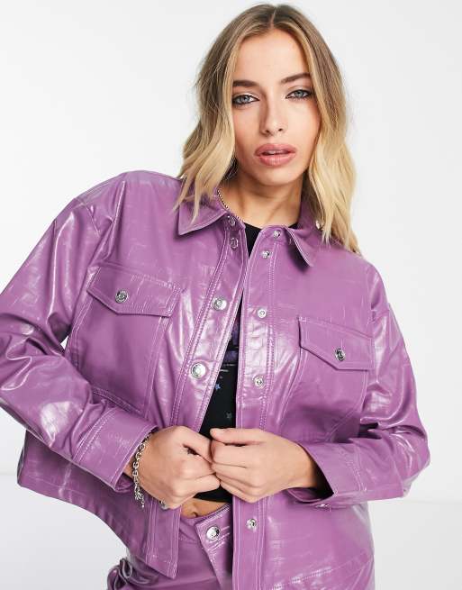 Only faux leather croc print jacket co-ord in purple patent