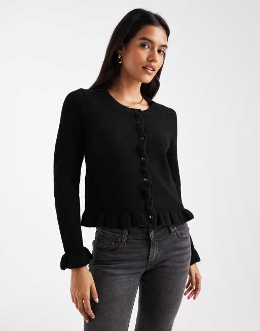 ONLY frill detail button cardigan in black