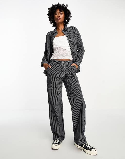 ONLY high waisted straight leg jeans co-ord in dark blue stripe
