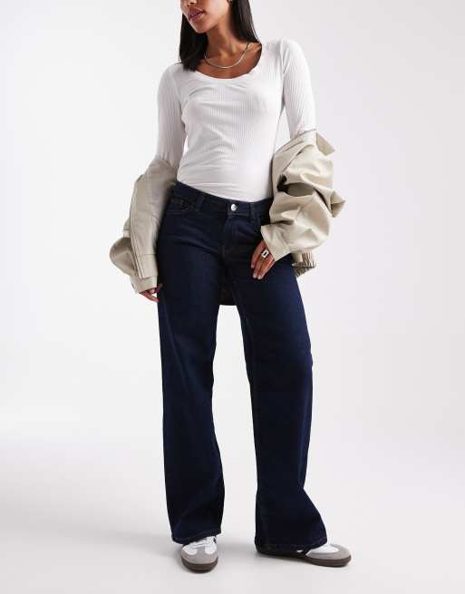 ONLY Judy low rise wide leg jeans in dark blue rinse