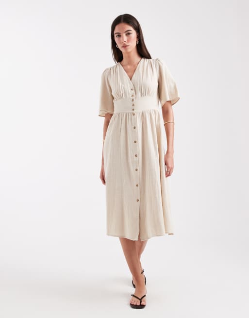 ONLY linen look midi shirt dress in beige
