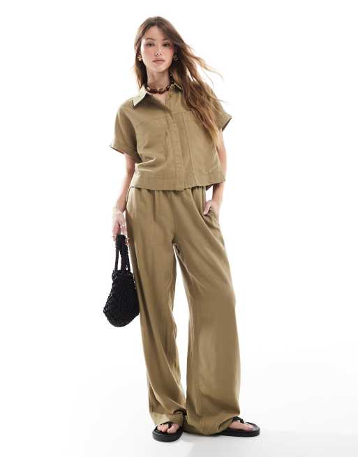 ONLY linen mix utility shirt & trousers co-ord in light khaki