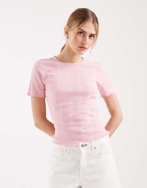 ONLY pointelle lettuce edge top in light pink