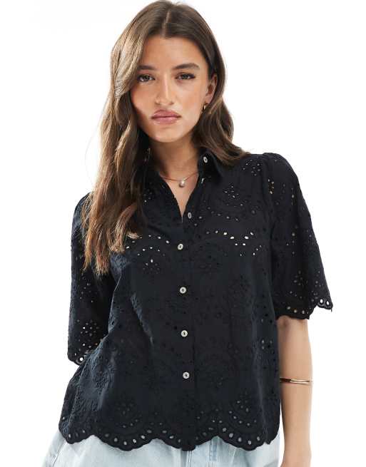 ONLY pointelle short sleeve shirt in black
