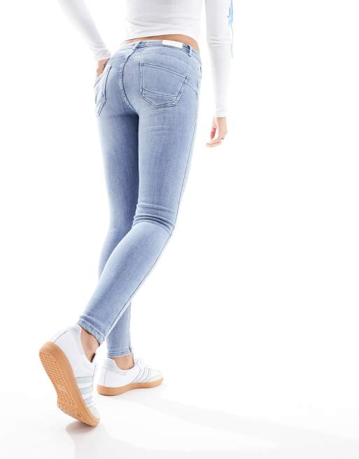 ONLY Power mid rise sculpt skinny jeans in light blue wash