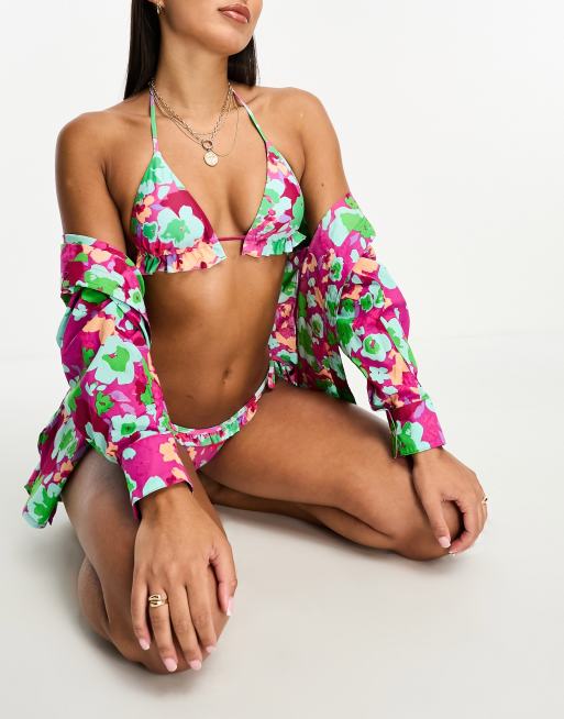 ONLY ruffle detail triangle bikini top co-ord in pink floral