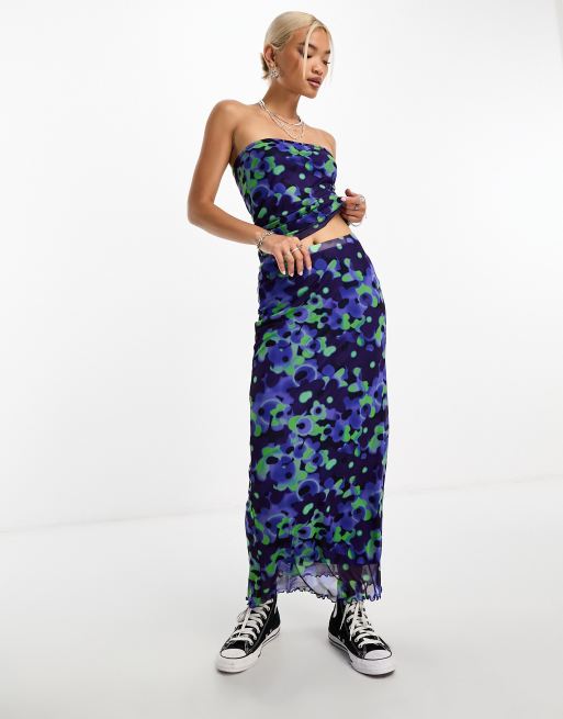 Only scallop edge mesh maxi skirt co-ord in blue floral