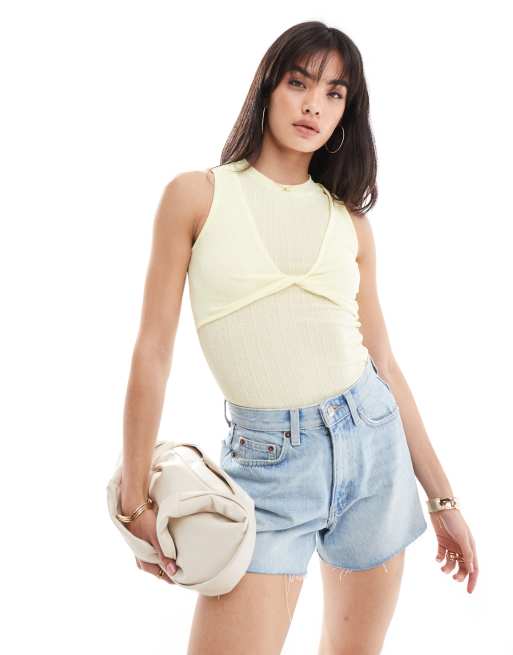 ONLY twist front sheer top in light yellow